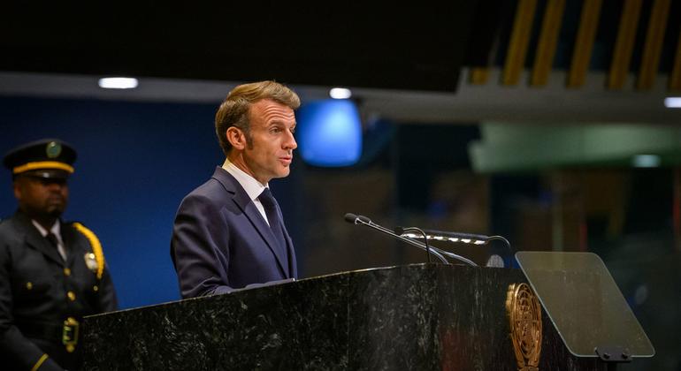 马克龙表示,联合国在为和平、发展和人权服务八十载之后,“我们需要审视其进展,确保联合国与当今世界同步前行”。